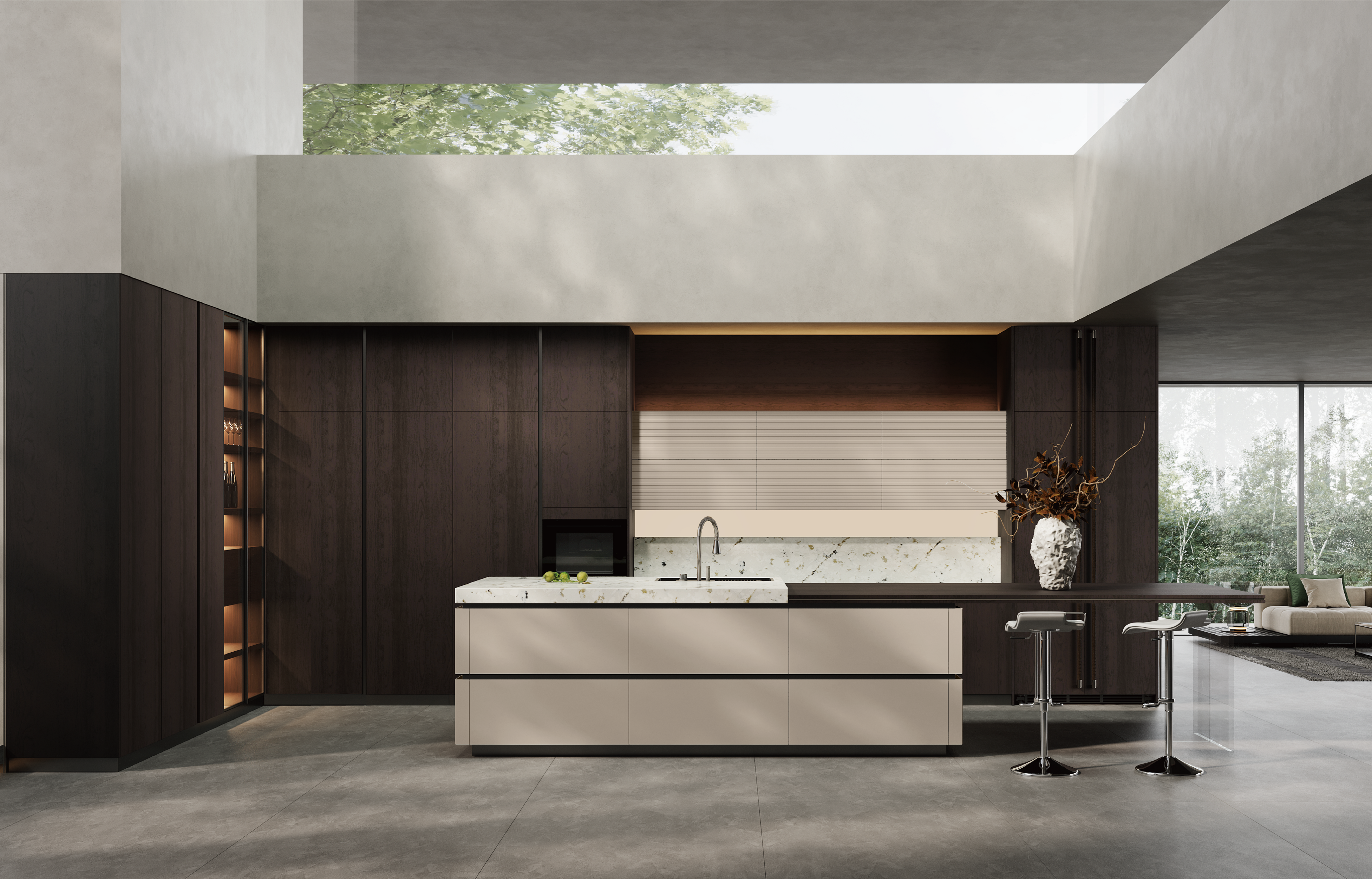 通过万博厨柜量体裁柜,定制出适合主厨下厨的烹饪区和洗涤区的舒适高度。